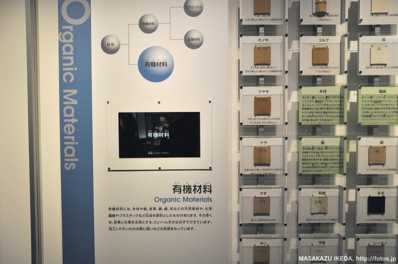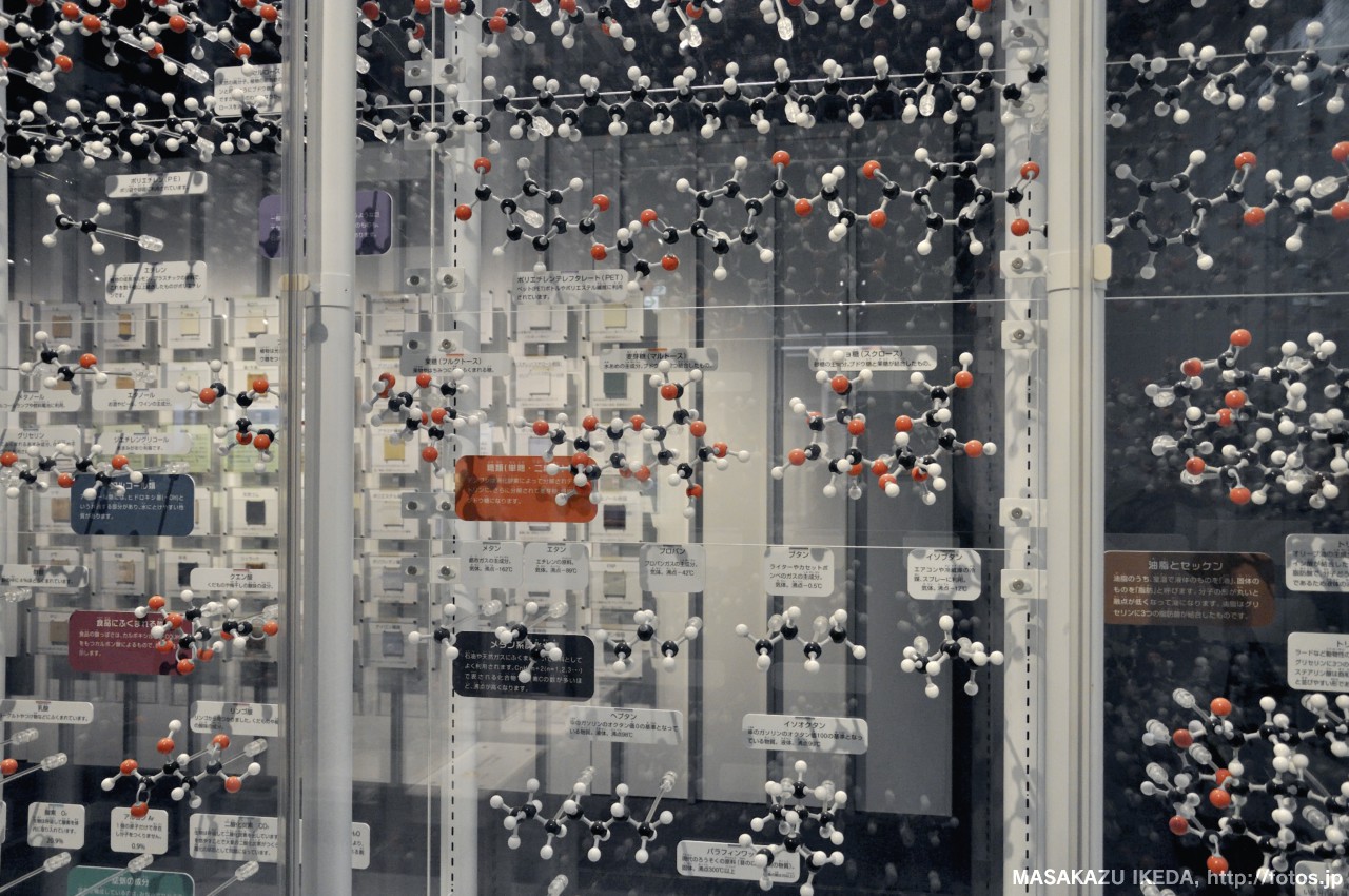 分子模型や鉱物なども展示されていて、実際どんなものかを見ながら知ることができます。
